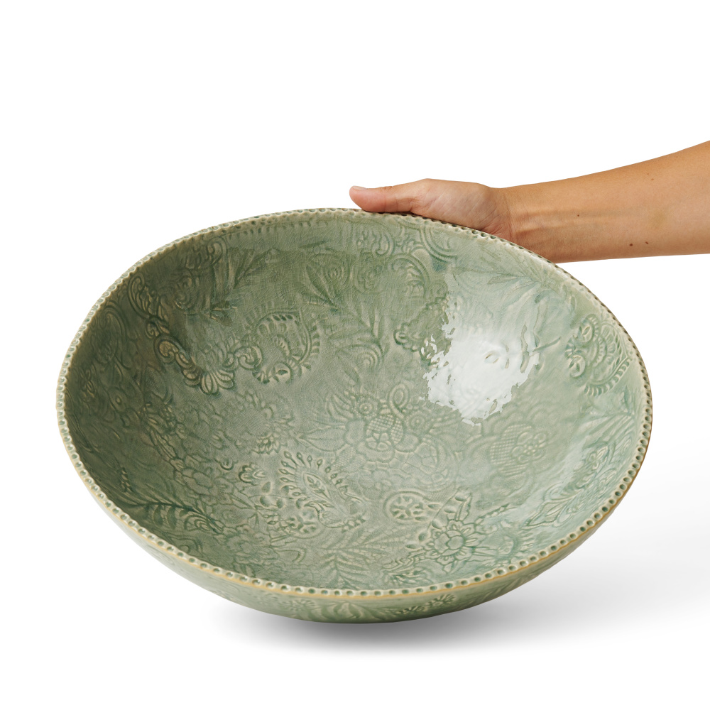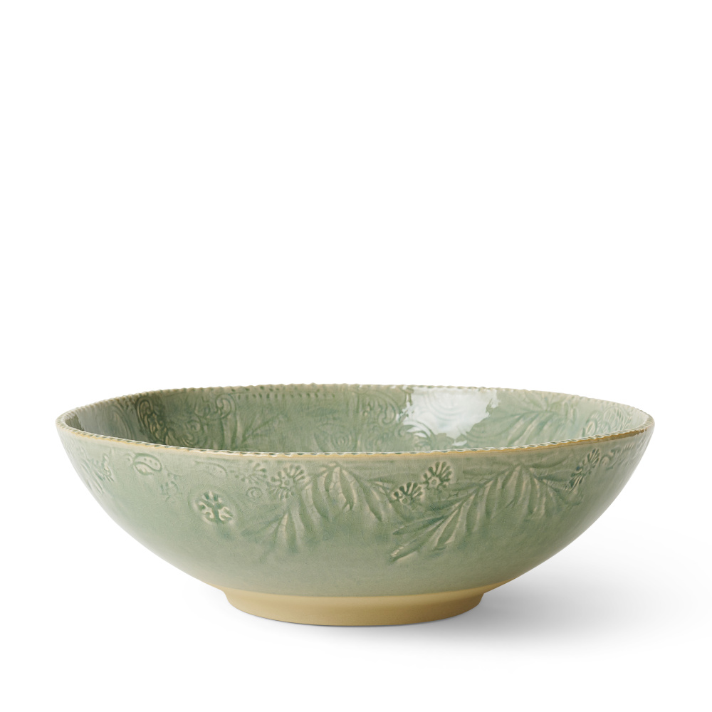Skålen er en del av den vakre Arabesque-kolleksjonen fra Sthål, kjent for sitt dekorative mønster som pryder både innsiden og utsiden. Den unike antikgrønne glasuren gir et levende og eksklusivt uttrykk, med fine krakeleringer og nyanser som gjør hver skål helt unik.